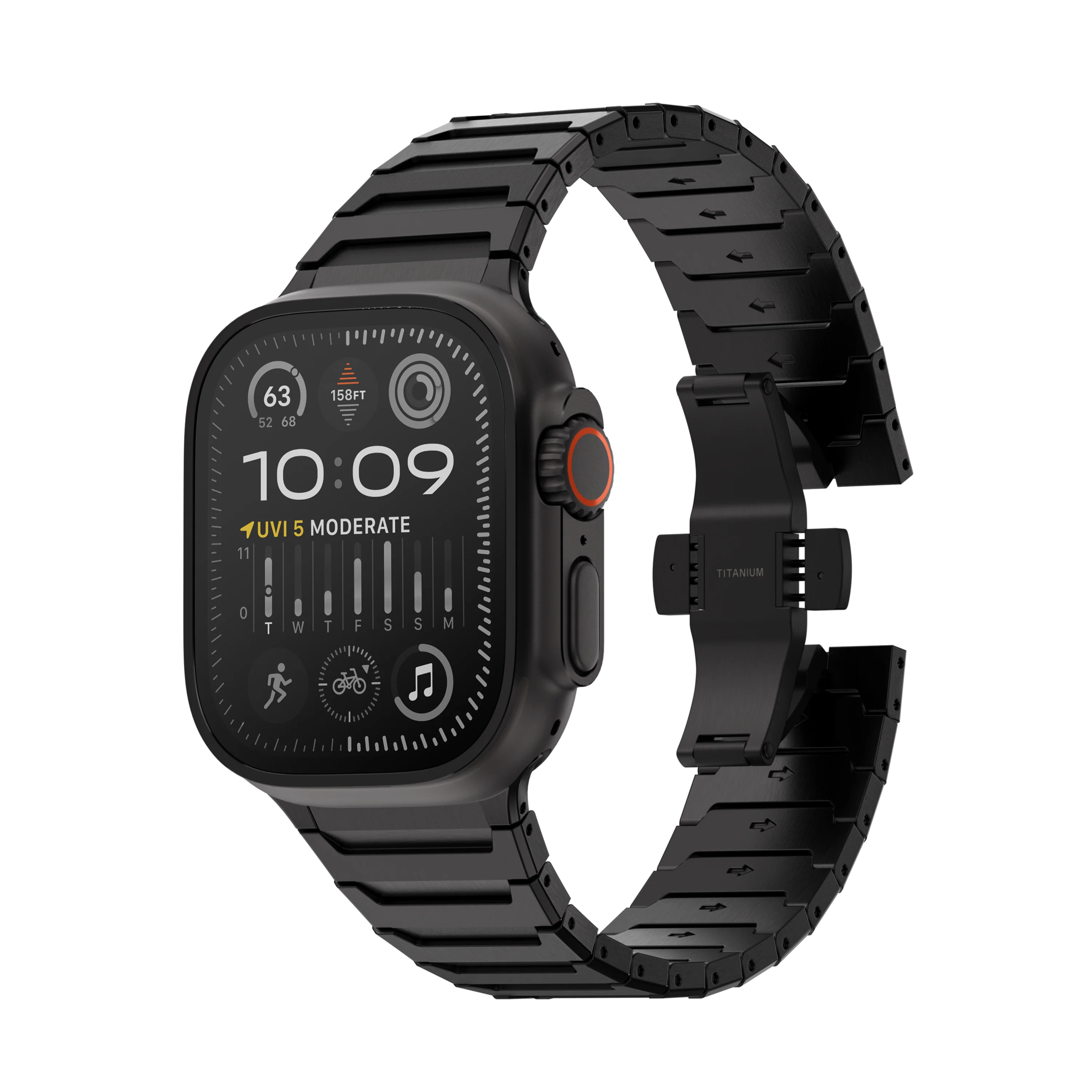 Introducing the Smussare Titanium Band for Apple Watch – a premium accessory that seamlessly blends style, durability, and comfort. Crafted entirely from high-grade titanium, this band features titanium links, connectors, and a clasp, ensuring exceptional strength while remaining remarkably lightweight. The DLC (Diamond-like Carbon) coating enhances its durability, providing superior scratch resistance to keep your band looking pristine through daily wear.